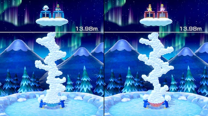 We had a good time, I won't dispute that. But the seams of Super Mario Party seemed to unravel the more matches we played. In past games, the traditional board game mode was structured by random acts surprising players, and by the end, the person with the most stars came out on top. In Super Mario Party, that's still true, but there's some notable changes that make the outcome less interesting. For instance, in Super Mario Party, on three of its four board game maps (two less than the usual standard of six boards), stars only cost 10 coins to buy contrary to costing 20 coins from past games. In the fourth map, the cost of the star rotates randomly by a lottery ball in the center, but the catch is that there are more stars up for sale and Toadette doesn't move at all, making for an endless circle with two particular routes to reach it every time. Everyone is flush with stars in perpetuity.