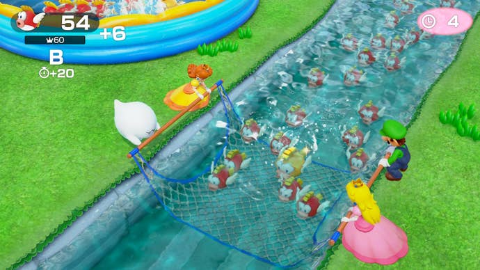 Super Mario Party introduces a few twists to the familiar formula too, with multiple modes besides its classic board game. River Survival, a new cooperative mode where instead of navigating a board you row down a river, switches up the usual competitive aspect of Mario Party in a welcome way. Unfortunately, it grows redundant as the minigame variety is low and by the end of the river, you're bound to see repeats.