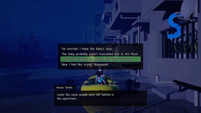 Still, for all its technical faults, the structure of Disaster Report 4 remains novel and charming in its own right. In one moment, it's an action-adventure as you flee the chaos of crumbling buildings; the next it's almost a visual novel thanks to its surplus of dialogue options. There are haunting moments that work as intended; like walking up to a ferry dock to board a rescue boat, only for an aftershock to occur that sends a group of citizens falling into the ocean screaming, as I run the opposite direction to avoid the crumbling concrete. In these moments, it's horrifying and affecting.